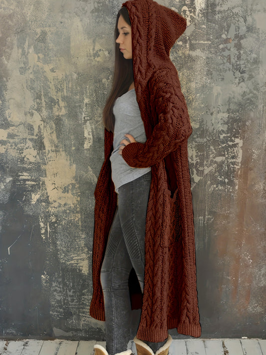 Plus Size Women's Solid Color Hooded Cardigan Coat, Casual Knitted Sweater Coat