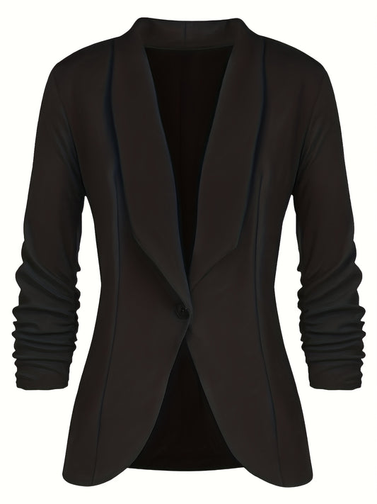 Plus Size Casual Blazer, Women's Plus Solid Long Sleeve Lapel Collar Single Breast Button Slim Fit Blazer