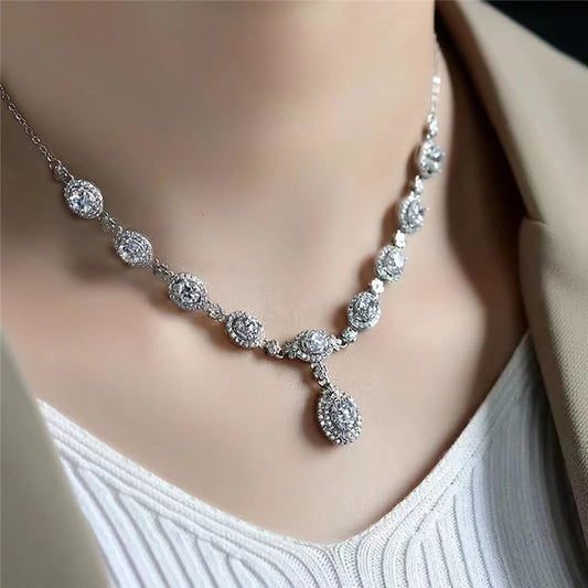 6 Stones 5mm Full Moissanite Necklace S925 Silver Water Drops Versatile Clavicle Chain Women's Evening Dress Wedding Jewelry