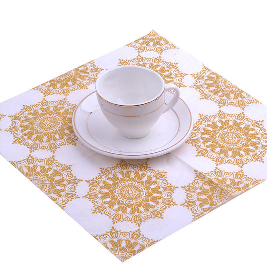 20pcs Golden Napkin Printed Placemat Paper, Hotel Banquet Paper Cup Flower Paper Golden Holiday Party Decoration