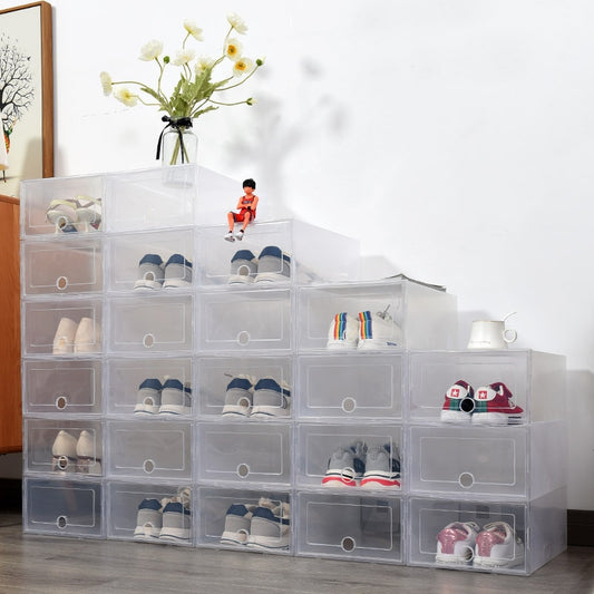 6pcs Fold Plastic shoe boxes storage box shoes box thickened dustproof shoes organizer box superimposed combination shoe cabinet